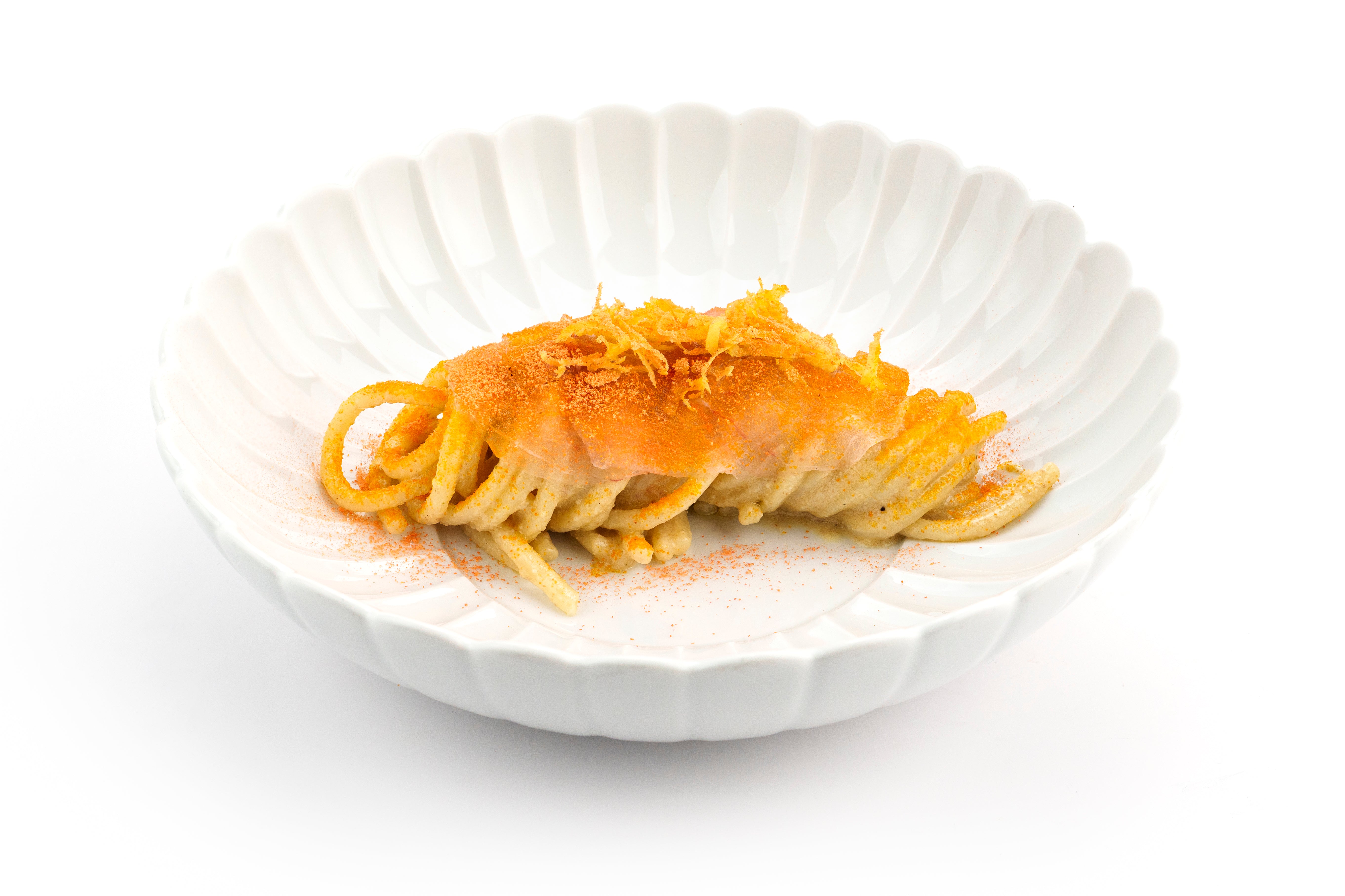 Fatto con una salsa di alici di Testa Conserve, farina di mandorla siciliana, succo e buccia grattugiata di limone fresco e arancia, zenzero, cannella e chiodi di garofano. Creata da Ciccio Sultano, perfetta per condire la pasta e sorprendere con sapori mediterranei.