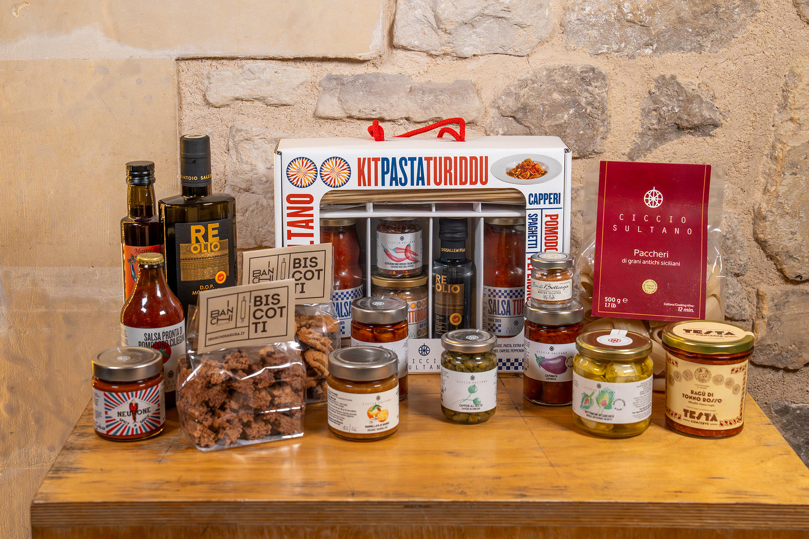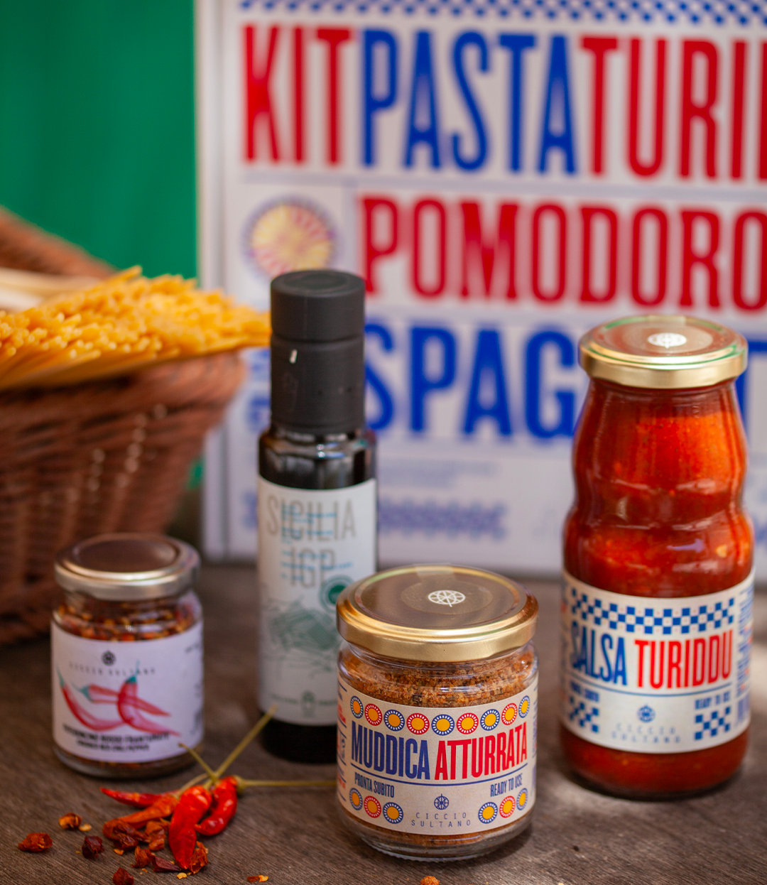 Il Kit Turiddu racchiude i sapori più autentici della tradizione siciliana, selezionati da Ciccio Sultano per portare a casa tua l’essenza della sua cucina.